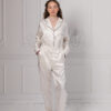 The Bubble Bee Signature Collection SS21 Classic Nature Silk Loungewear Collection Black Piping tapered-leg Silk Trousers are one of the most iconic pieces.